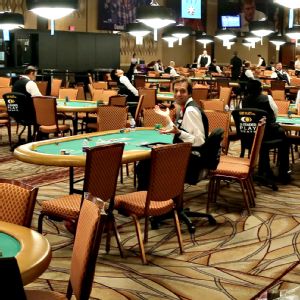 Around 20 cash game tables in the Pavilion were affected and 23 tournament tables in the Brasilia room were closed and players were re-routed to the Amazon room. Barring another downpour, the tables should be ready for Day 1C’s crowd.